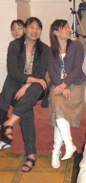[Left] Lynda Chung helps Stephan put the powerpoint highlights into Chinese. [Right] Lynda and other conference workers take a short break from many hours of work to sit in the back of the room and attend a conference session.