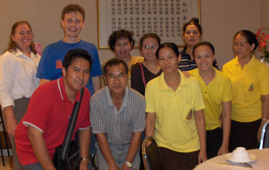 Hi guys! I have a half hour to tell about the National Forest and the Thai dancing. I'll start with the dancing. Chalam and his son joined us, so we were 7 people, starting with a dinner at our favorite vegetarian Buddhist restaurant, the food is great there and of course they were all smiles and friendly -- we took some pictures
