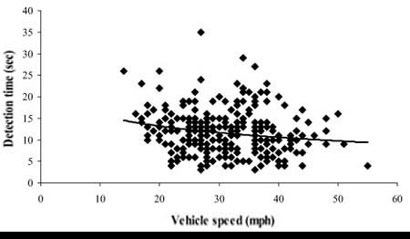 Figure 3. Correlation of vehicle speed with detection time in the straight condition